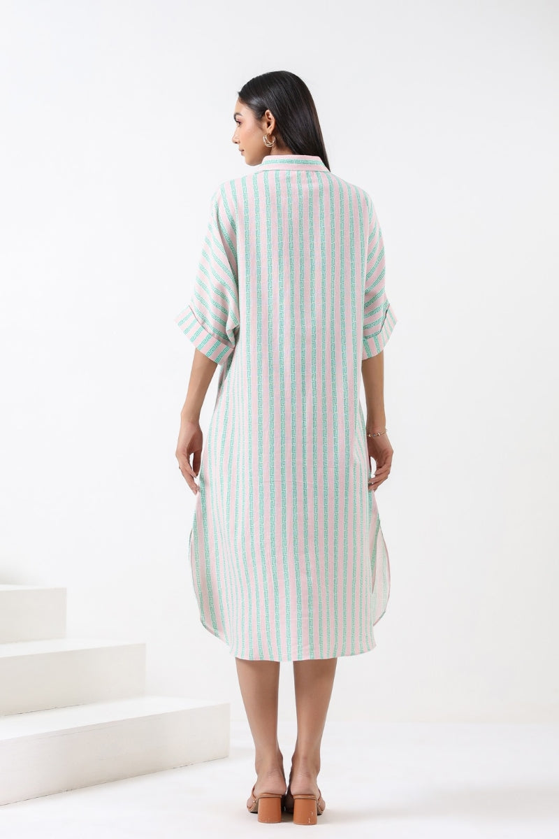 PINK/SAGE STRIPE SHIRT DRESS