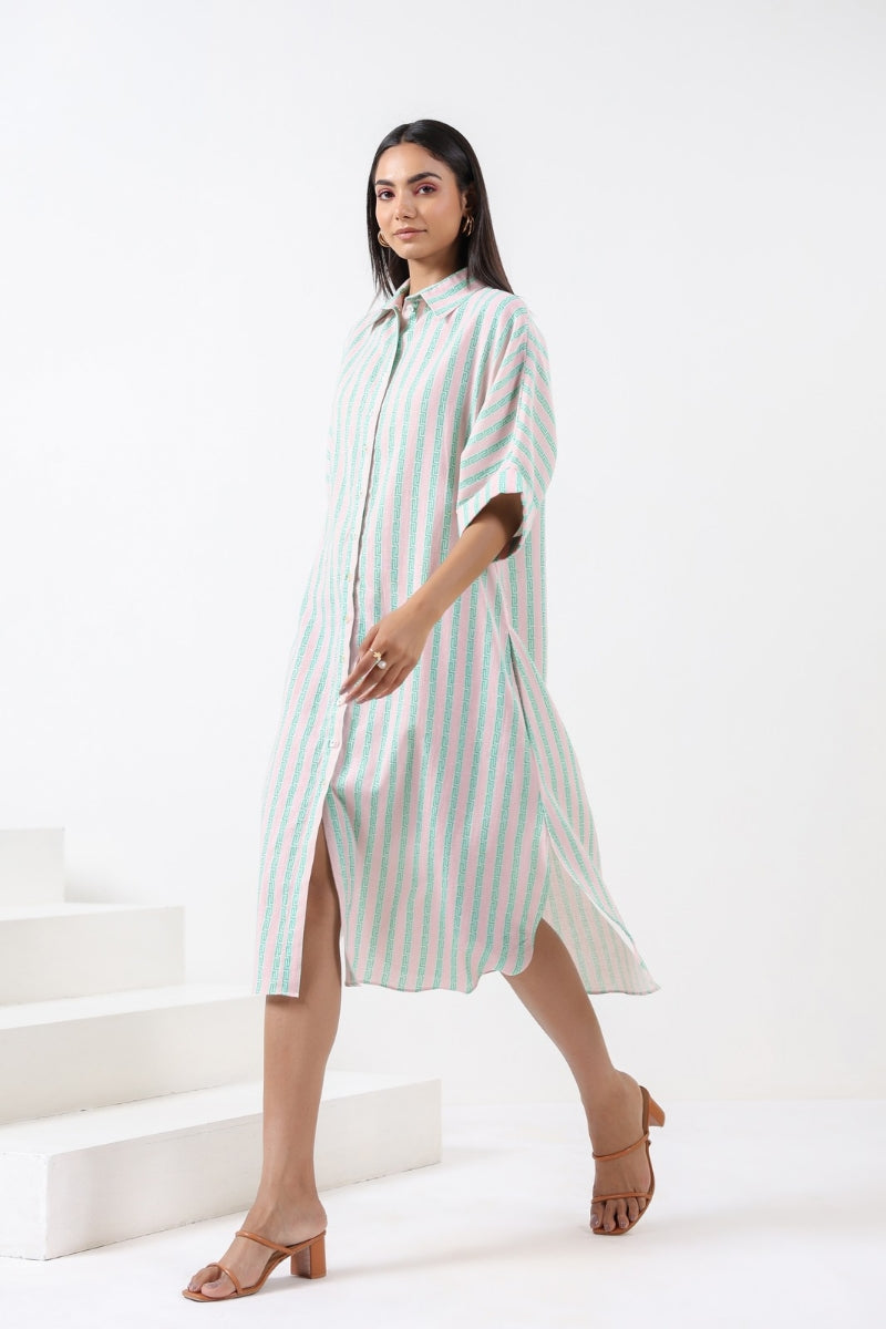 PINK/GREEN STRIPE SHIRT DRESS