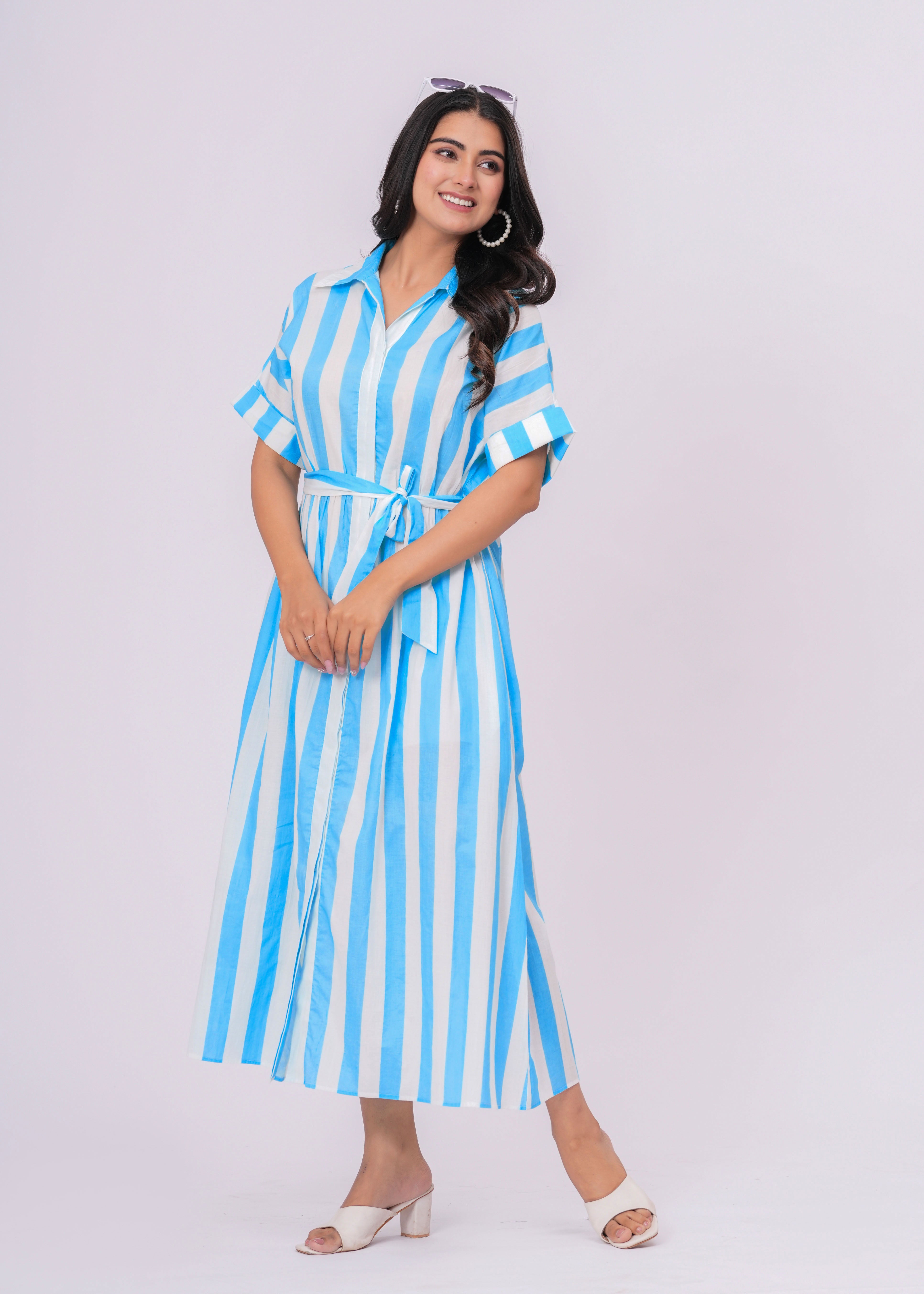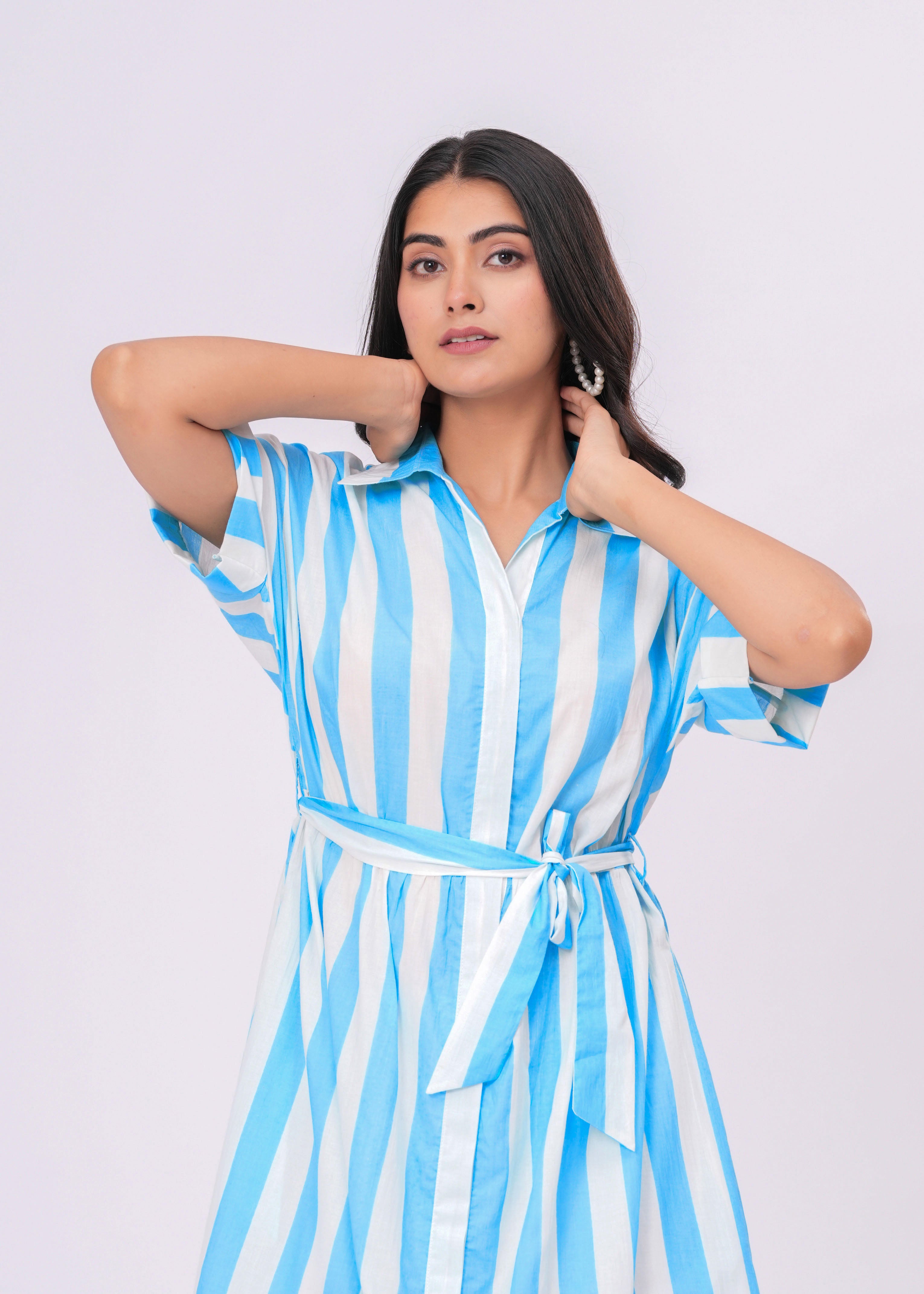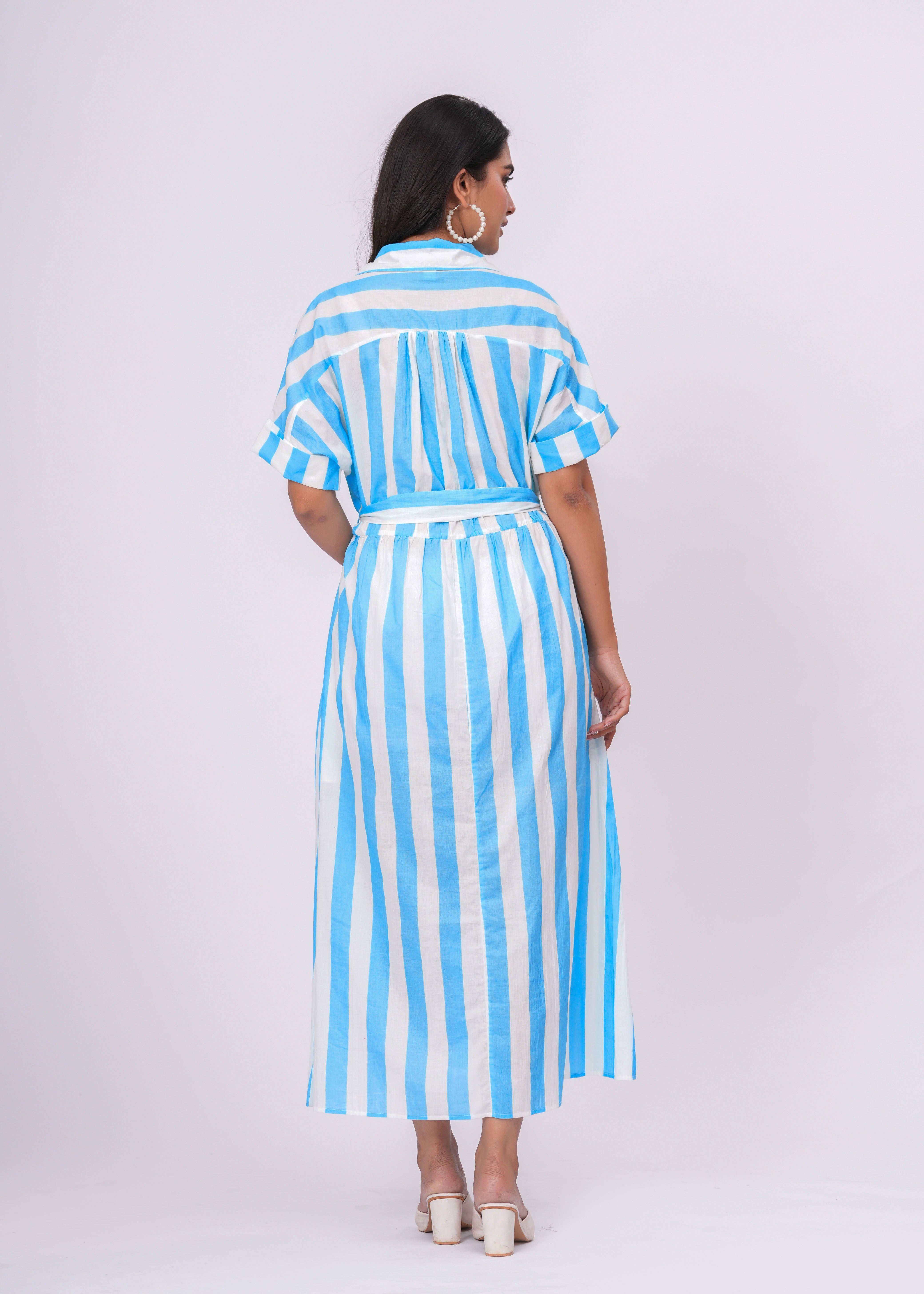 TURQUOISE/WHITE STRIPE SHIRT DRESS