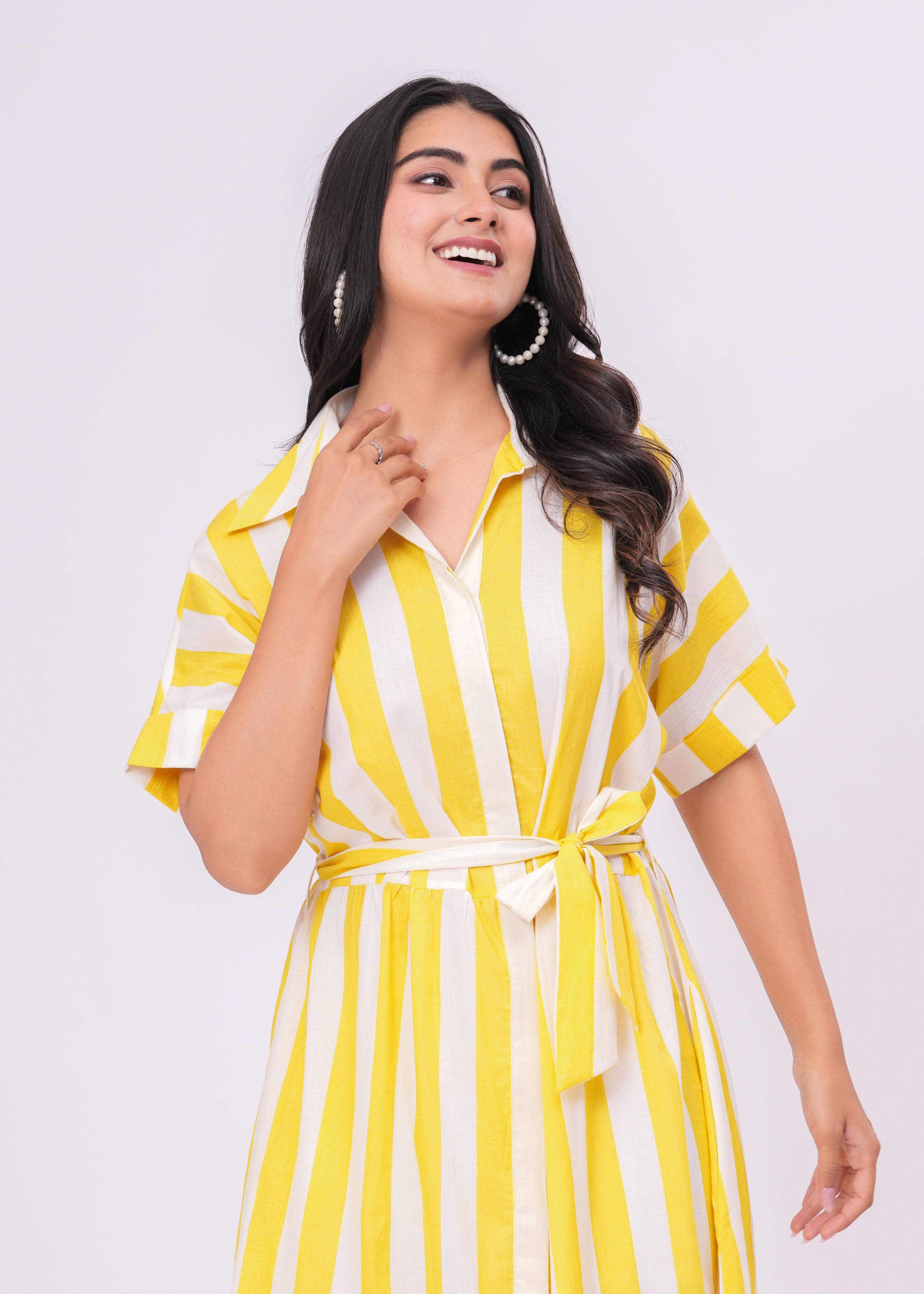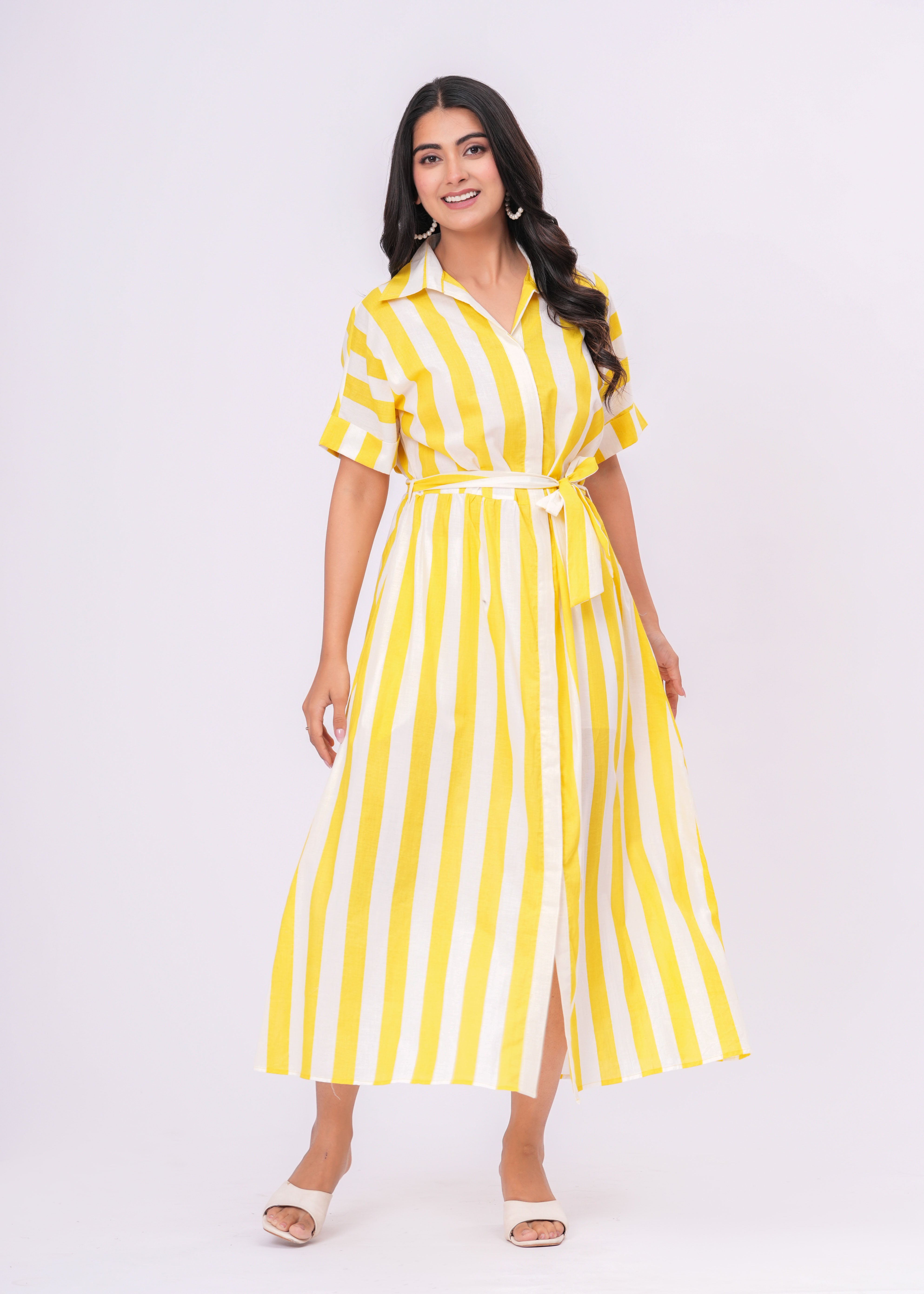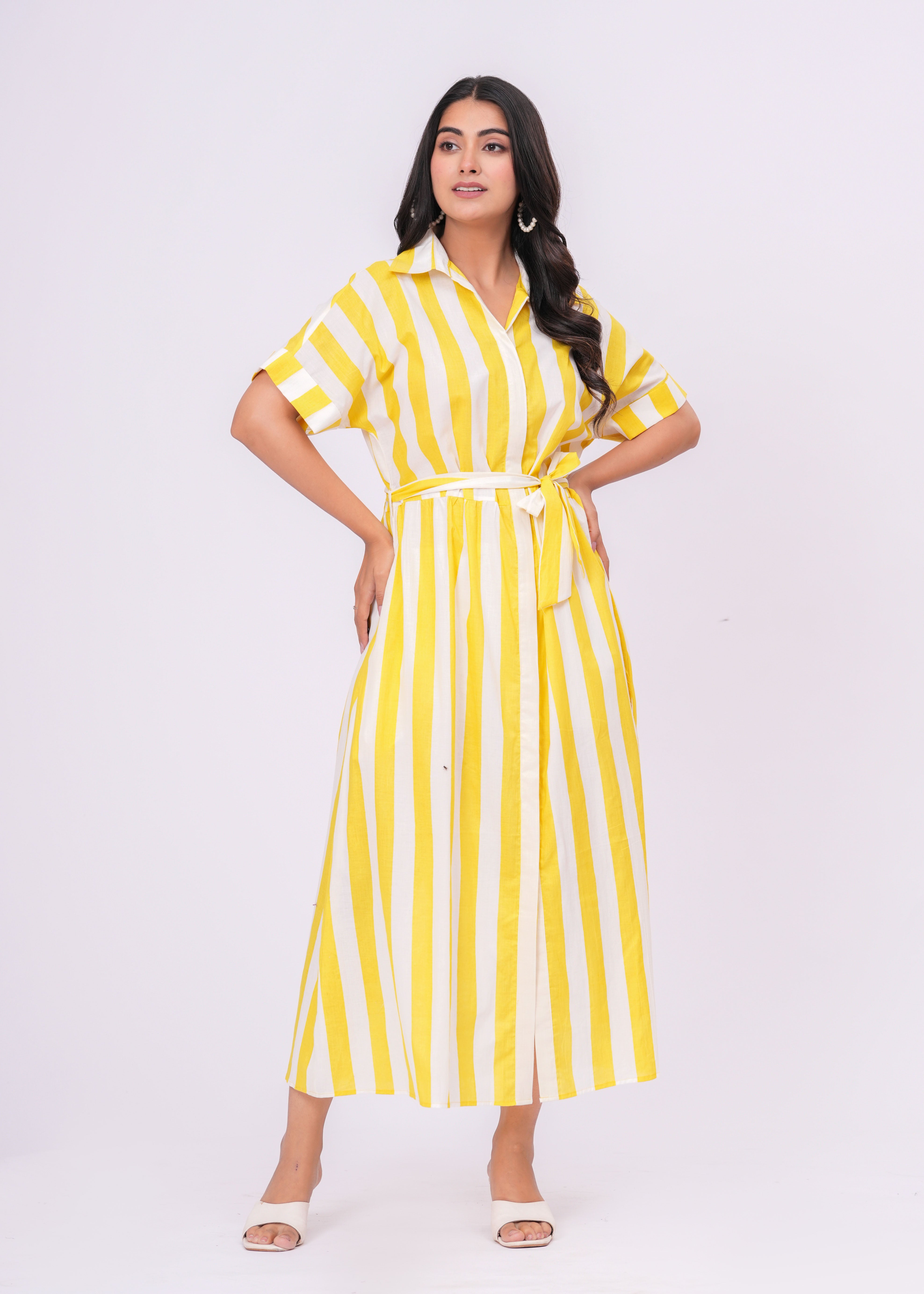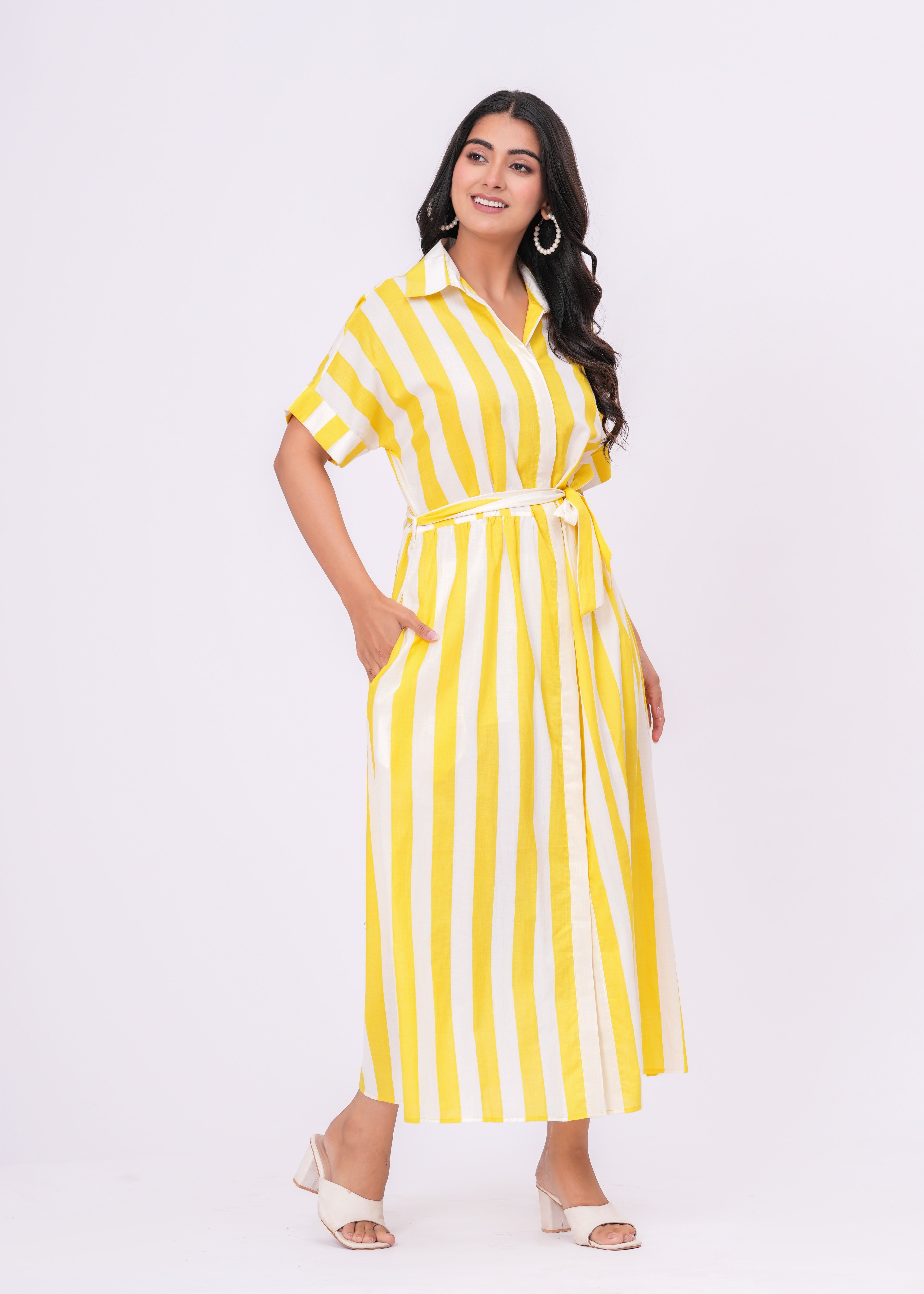 YELLOW/ WHITE STRIPE DRESS