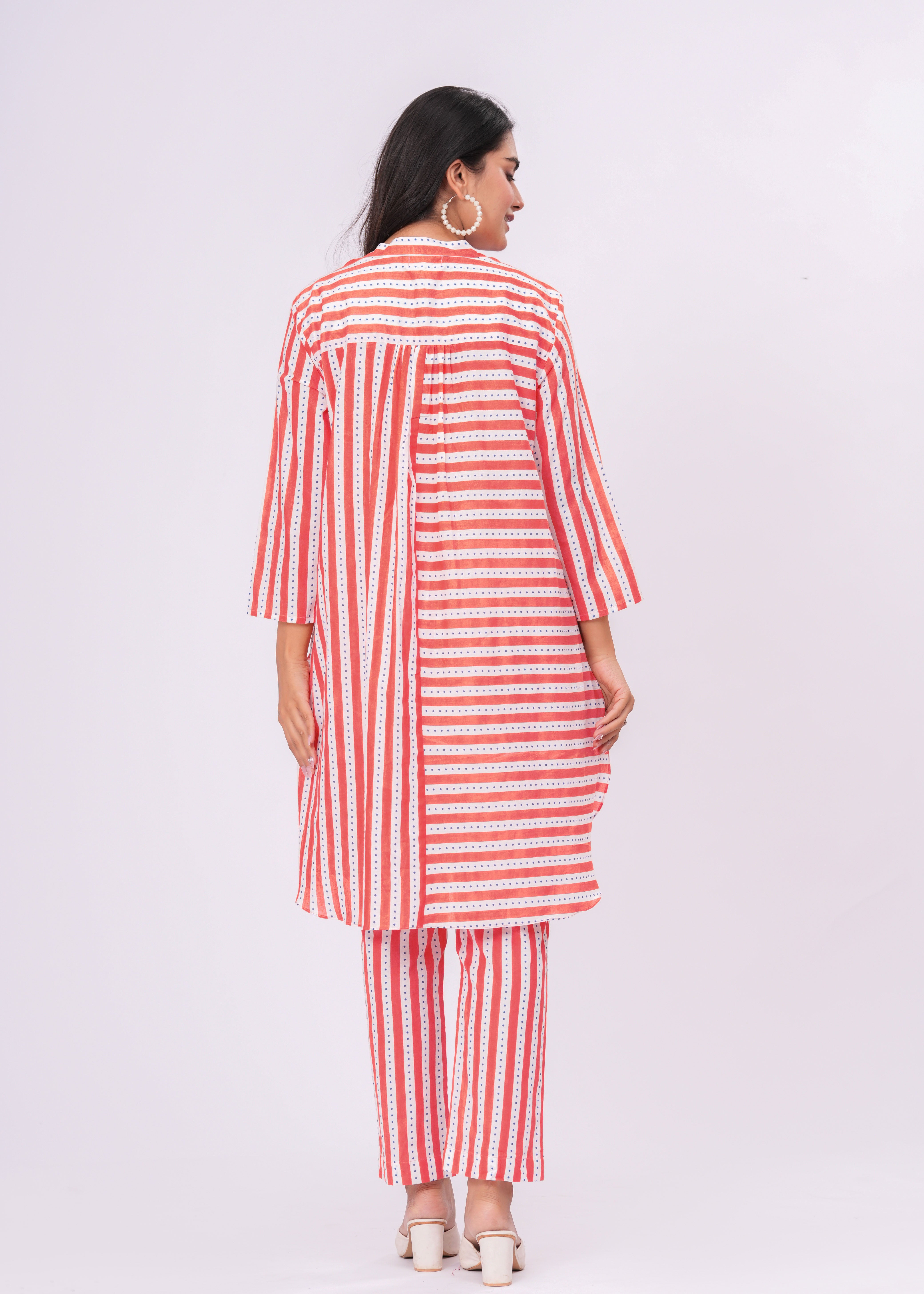 ORANGE/ WHITE STRIPES V-NECK STRAIGHT KURTA