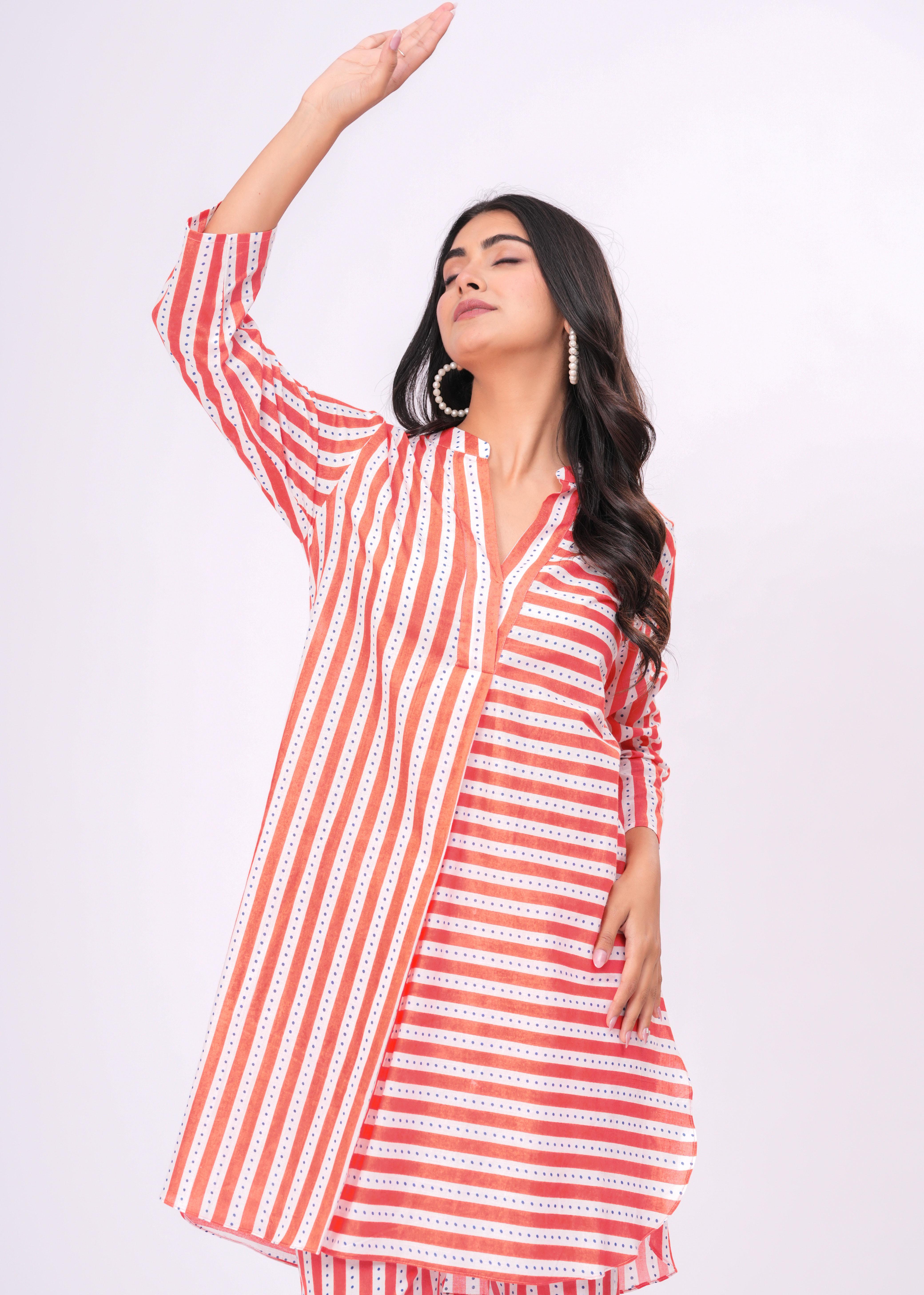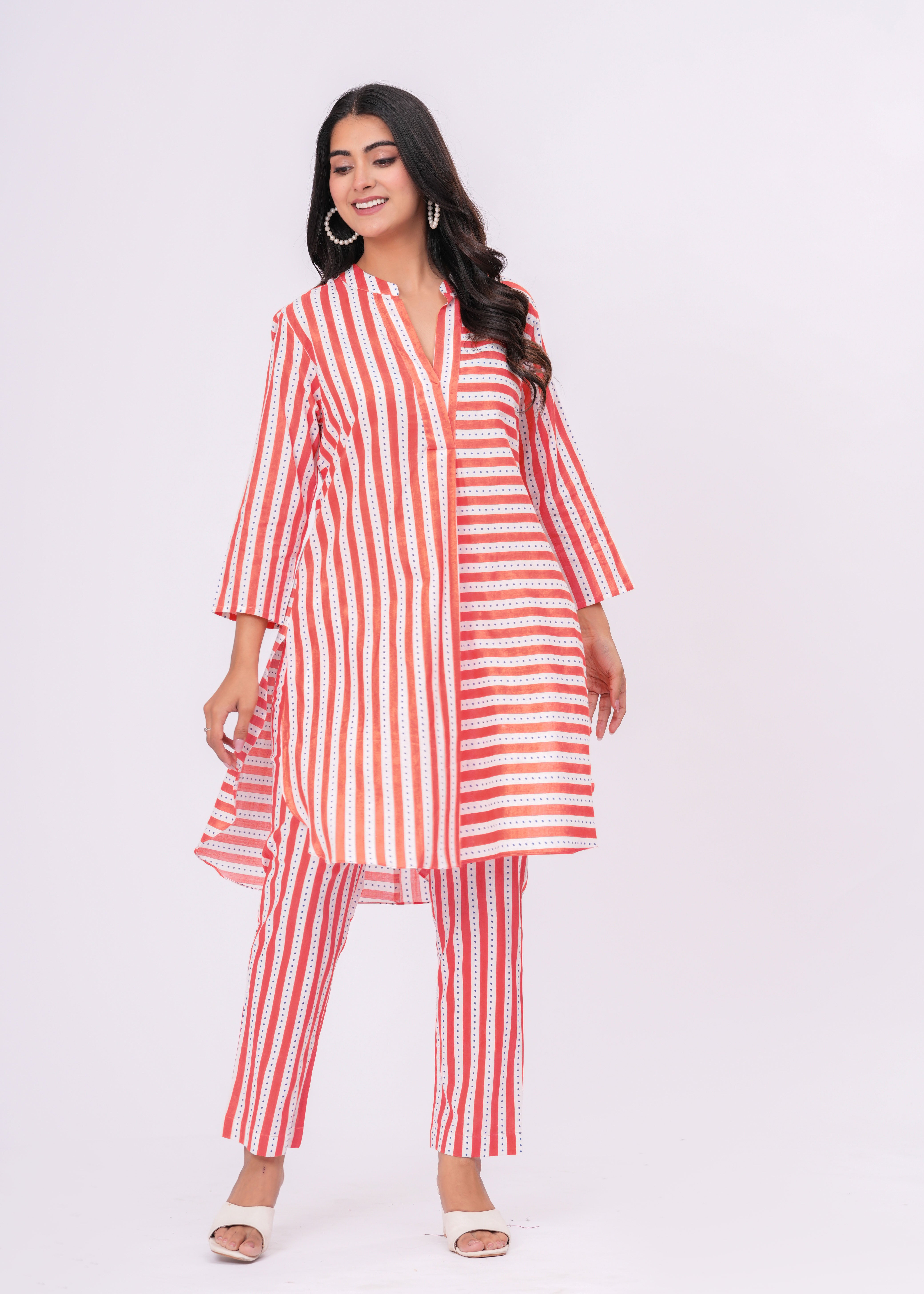 ORANGE/WHITE STRIPE CO-ORD SET