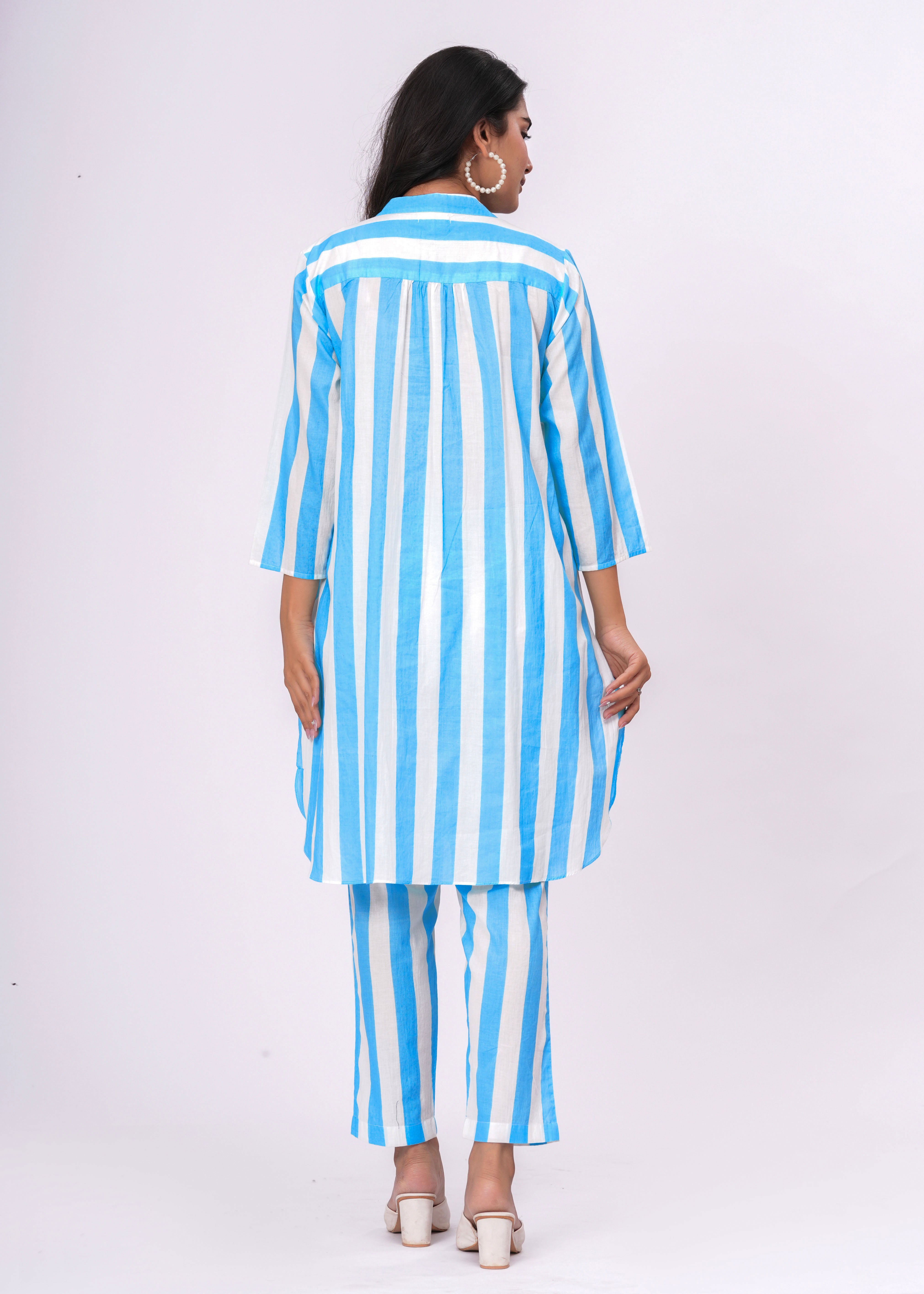 TURQUOISE/ WHITE STRIPE CO-ORD SET